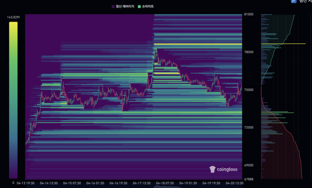<출처 : https://www.coinglass.com/ko/pro/futures/LiquidationHeatMap?coin=BTC >