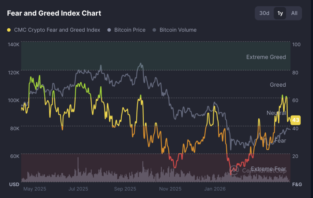 공포 탐욕 지수는 43(Neutral)를 나타내고 있다. 얼마 전까지만 해도 시장을 지배했던 극심한 공포(Extreme Fear) 단계가 두 번이나 반복되었다. 역사적으로 이런 패턴은 시장 참여자들의 항복을 받아내고 바닥을 다지는 신호였다. 대다수의 개미 투자자들이 시장을 떠나고 무관심해질 때, 진짜 기회는 조용히 고개를 든다.