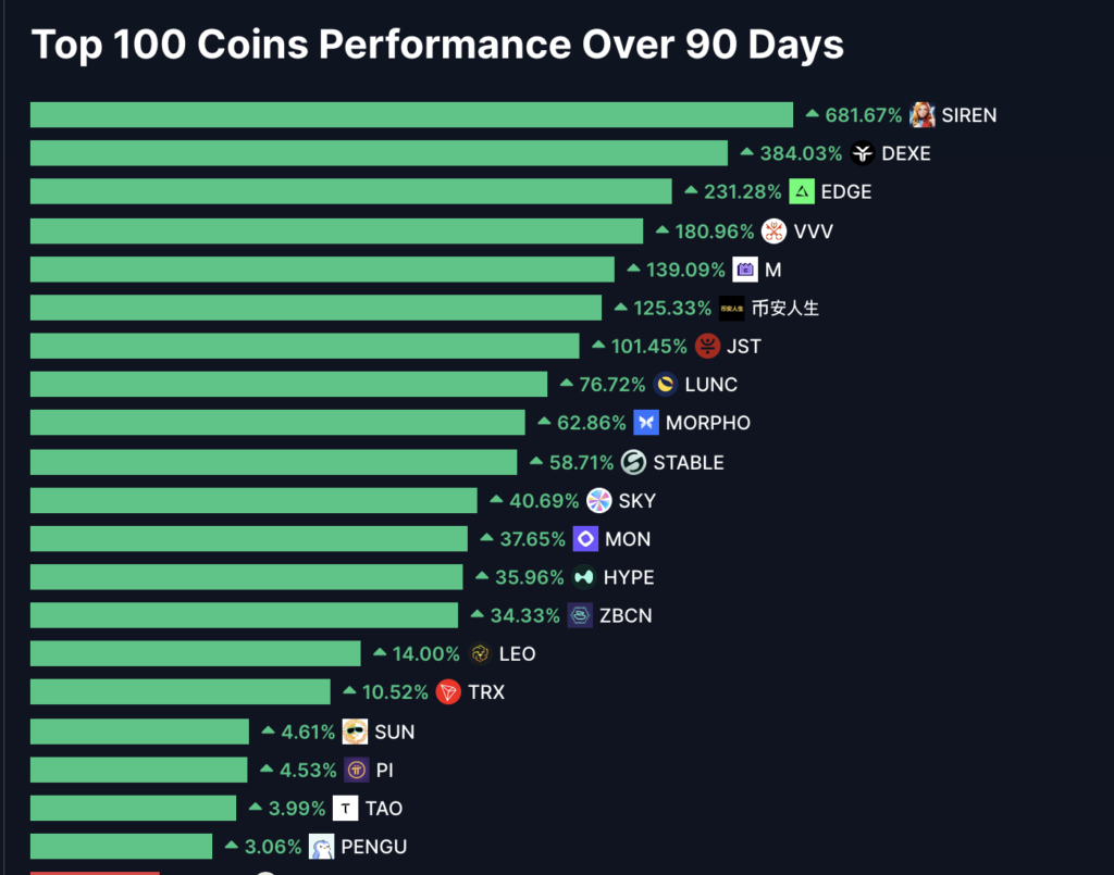 특히 이번 주 루나 클래식(LUNC)과 같은 종목들의 단기 펌핑은 시장의 유동성이 다시 살아나고 있다는 재미있는 시그널로 읽힌다. 망한 프로젝트의 잔해마저 들썩인다는 것은 시장에 눈먼 돈들이 다시 유입되기 시작했다는 방증이기도 하다. 섹터별로는 BNB 생태계의 민코인들과 AI 에이전트 계열인 사이렌, 엣지 등이 여전히 강한 퍼포먼스를 보여주고 있다.